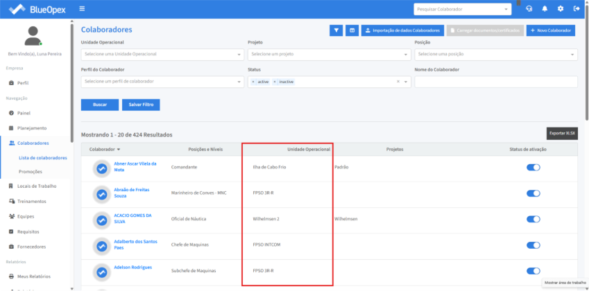 Na coluna “Unidade Operacional” é possível verificar a unidade operacional do colaborador.