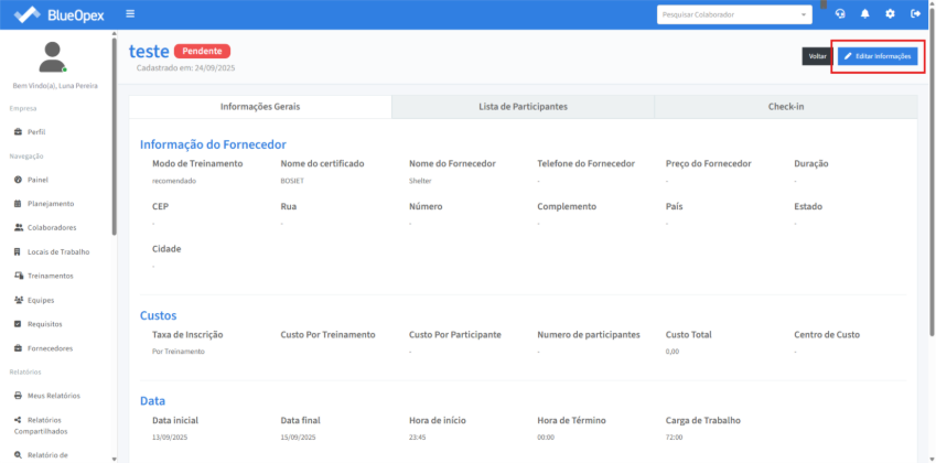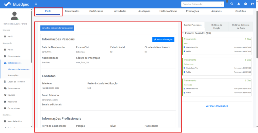 Todas as informações poderão ser editadas clicando em “Editar Informações”, caso haja alguma mudança a ser realizada no perfil do colaborador.