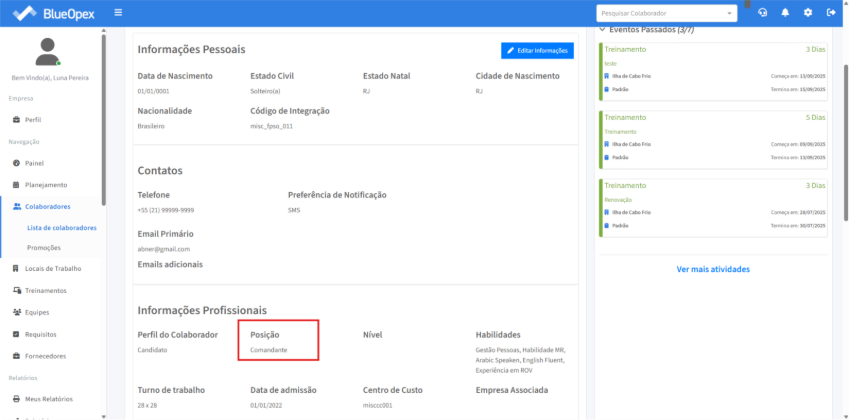 É imprescindível que a posição do colaborador esteja atualizada, pois isso é um dos requisitos para que o colaborador seja designado a atuar em um time que exija uma determinada posição.