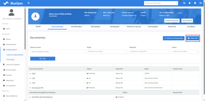 A visualização dos documentos também pode ser feita em formato tabela, que descompacta as informações preenchidas comparado a visualização padrão.