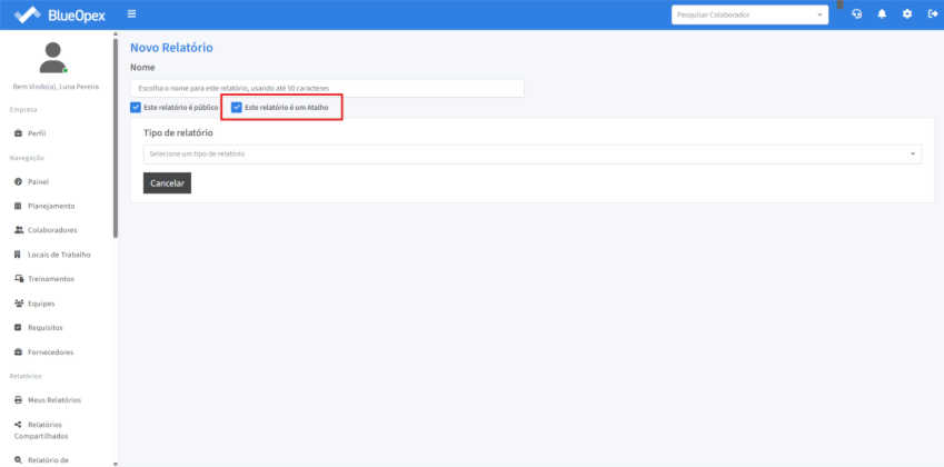 Para que o relatório possa ser gerado de maneira prática dentro da planning, lembrar sempre de marcar a checkbox “Esse relatório é um atalho”. Todo atalho se tornará público.