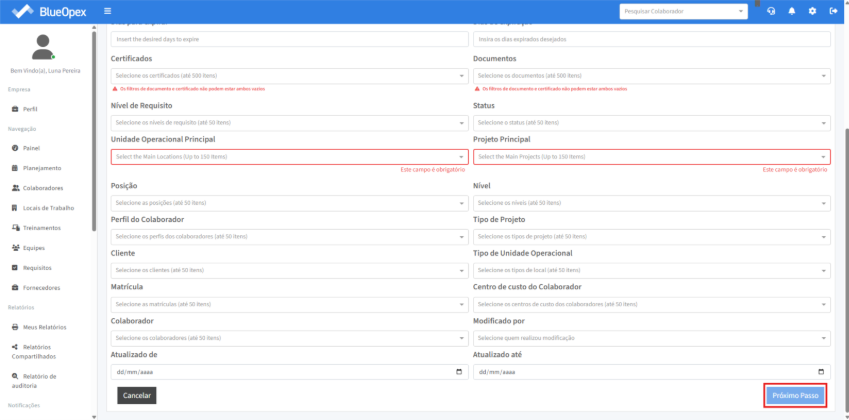 Após preencher os campos necessários, clique em "Próximo Passo".