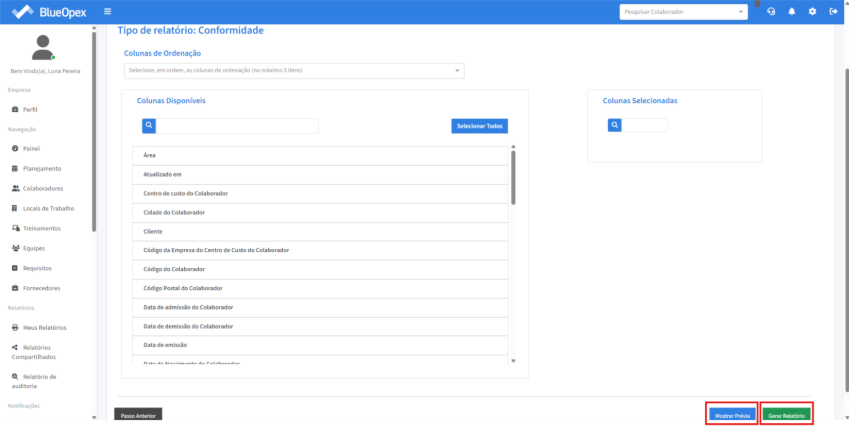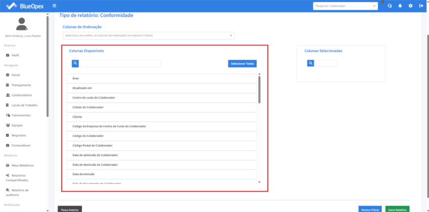 Assim, a função do sistema será gerar o relatório de conformidade de acordo com o configurado (com colunas escolhidas) abrangendo somente os colaboradores escalados na movimentação em questão.