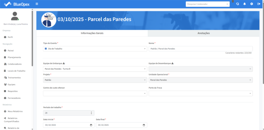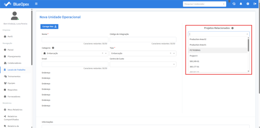 A tela de Unidade Operacional (UOP) no BlueOpex 2.0 tem como objetivo centralizar as principais informações operacionais de cada local de trabalho cadastrado no sistema. Ela permite o acesso rápido a dados cadastrais, histórico de entrada e saída, projetos vinculados e colaboradores atuando no local.