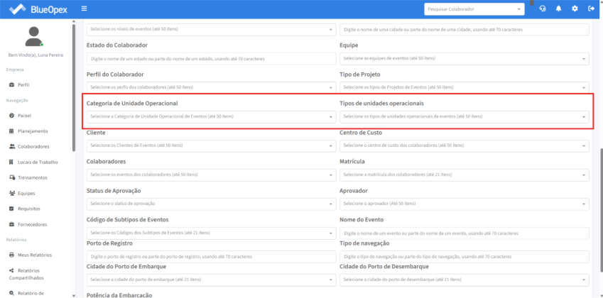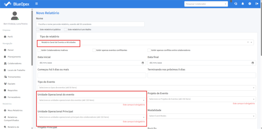 - E as colunas os "Unidade Operacional do evento” e "Unidade Operacional Principal" nos relatórios: