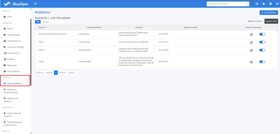 Para criar este relatório, no menu lateral esquerdo, acesse “Meus Relatórios”: