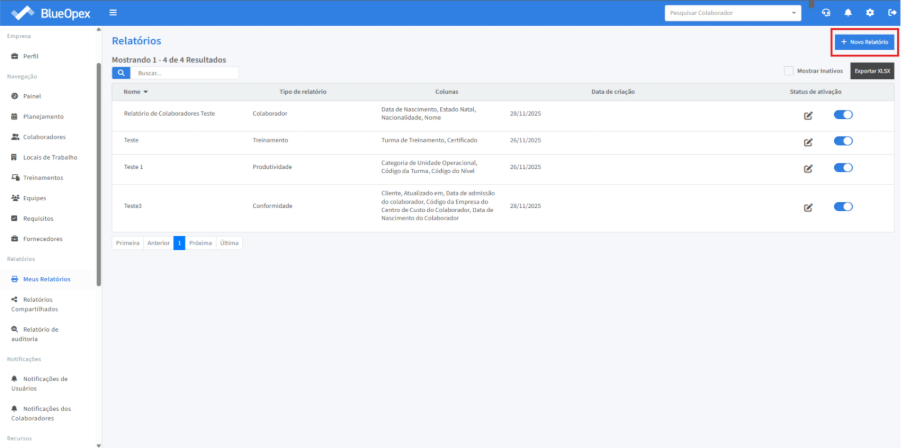 Esse relatório é sempre fixo e não editável, garantindo que todos tenham a mesma visão padronizada: