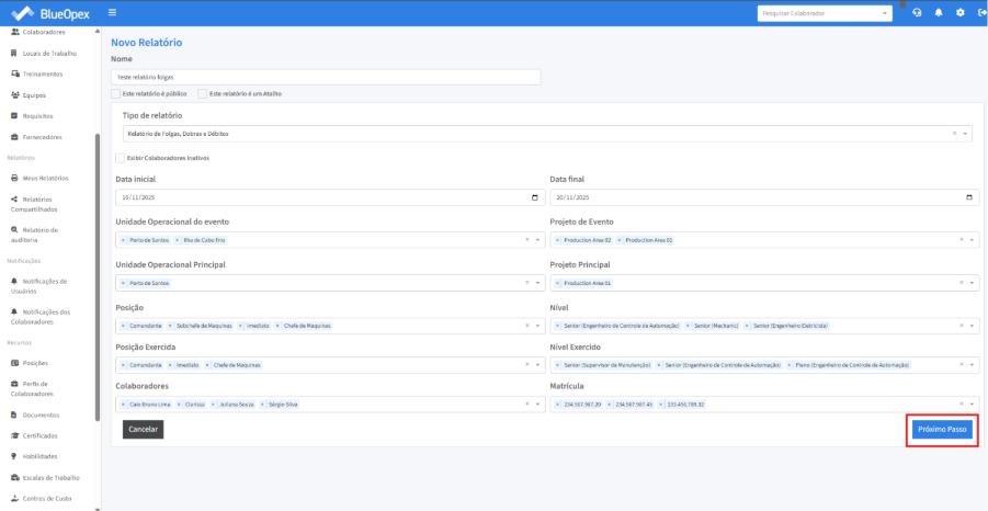 Selecione o botão “Próximo Passo” para seguir com a emissão do relatório:
