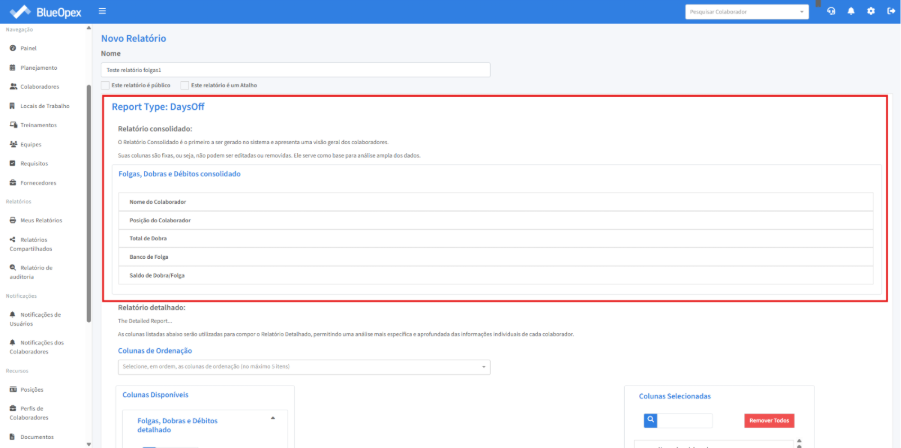 Dessa forma, o relatório facilita a gestão e garante que o saldo de folgas e dobras seja calculado corretamente, evitando inconsistências.