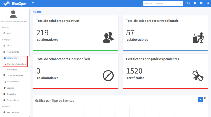 Na lista exibida, selecione o colaborador desejado para visualizar ou acessar o evento individual associado.