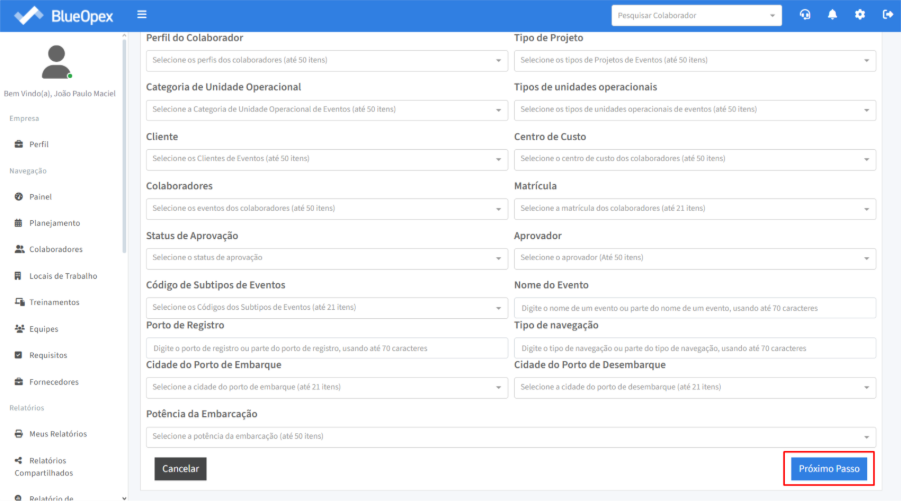 No final da página, clique no botão “Próximo passo” para continuar com a configuração do relatório.