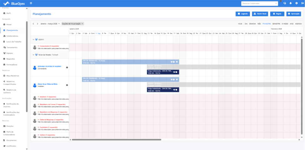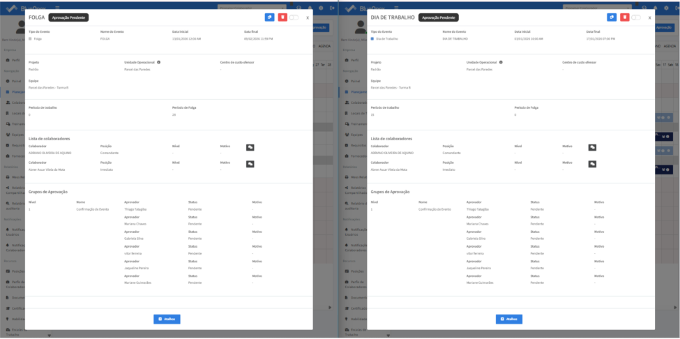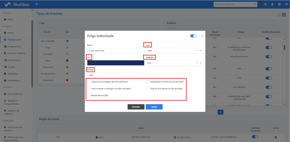 Após a configuração, quando for criado um evento de “Folga” que sobreponha um evento de “Dia de trabalho”: