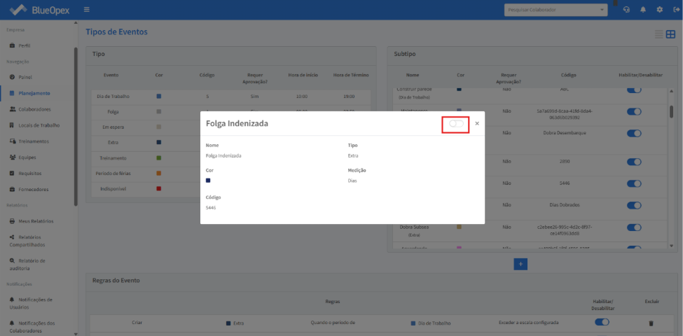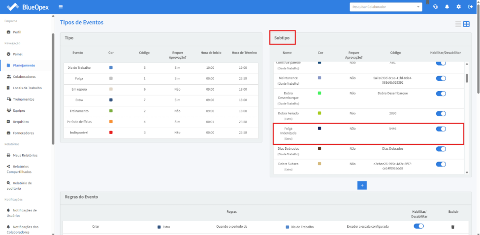 Verifique se o subtipo “Folga indenizada” está habilitado: